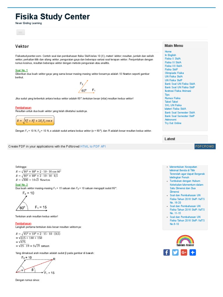 Contoh soal dan pembahasan vektor kelas 10. Jika sudut yang terbentuk antara kedua vektor adalah 600 tentukan nilai resultan kedua. Kami membas soal vektor kelas 10 lengkap untuk anda bisa pelajari langsung nantinya sehingga bisa membatu pelajaran buat anda semua. Cara mudah dan cepat mengerjakan soal vektor un fisika duration.