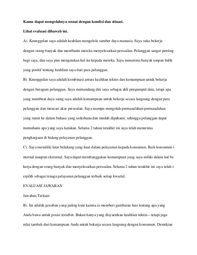 Home artikel utama 10 jawaban cerdas saat interview kerja 10 jawaban cerdas saat interview kerja. 24 daftar pertanyaan ini paling umum dan berpotensi ditanyakan saat interview kerja. 5 coba sebutkan kelebihan anda.